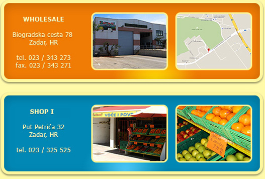 Wholesale is located on adress: Biogradska cesta 78, retail store is located on adress: Put Petrića 32, Zadar.